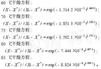 采用薄層Page 模型對實驗數據進行擬合[ 6 ] ,方程為