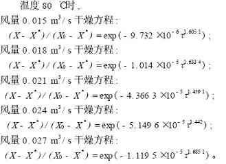 3) 提高干燥溫度與風量,對強化干燥過程有利。較佳的干燥工藝條件為風溫80 ℃、風量0. 021m3 / s (1. 34 m/ s) ,物料選擇為薄而雙層。