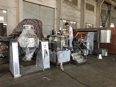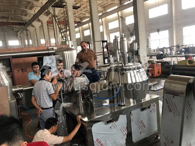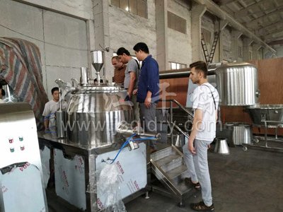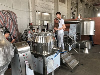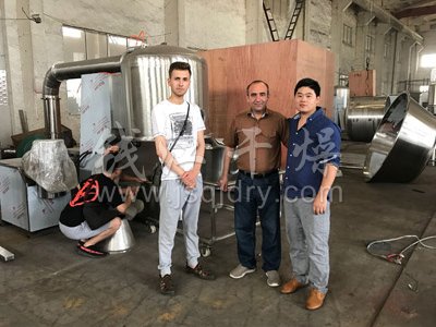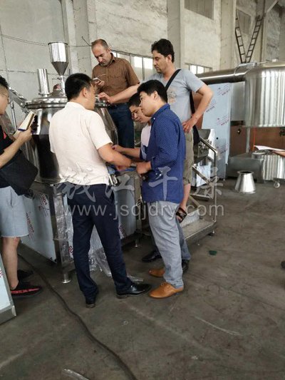 今日阿富汗客戶來公司對濕法制粒機、*沸騰干燥機、雙錐混合機等固體制劑設備進行了驗收,公司總經理劉建先生全程陪同對公司的產品進行詳細的解說,阿富汗客戶對公司的產品給予了肯定并愿意長期建立合作關系。同時合影留戀。