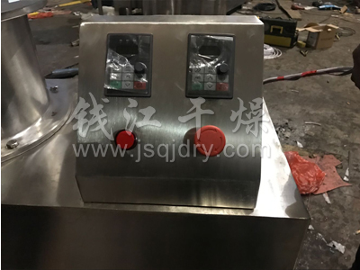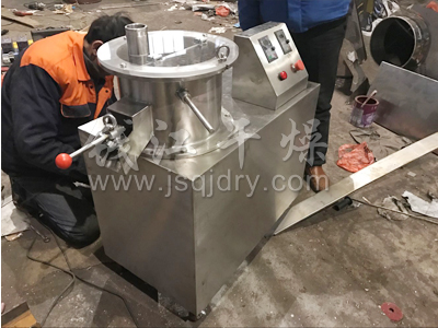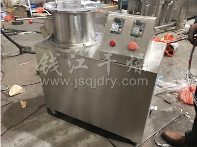 QZL型拋丸機將前道工序制成的濕顆粒投入旋轉離心盤內,使潮濕的顆粒受到環隙空氣浮力,旋轉離心力、自身重力作用,呈環形繩股狀運動,從合理方向通過多流體噴槍向運動料層噴入配方液,從而形成圓球度很高的球丸,原理與旋轉流化床類似。