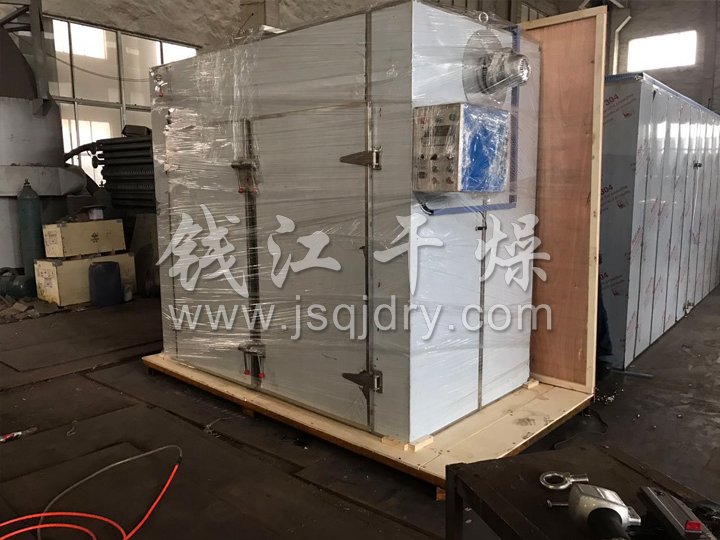 大部分熱風在箱內循環,熱效率高,節約能源。利用強制通風作用,箱內設有可調式分風板,物料干燥均勻,熱源可采用蒸汽、熱水、電、遠紅外,選擇廣泛。整機噪音小,運轉平衡。溫度自控,安裝維修方便。適用范圍廣,可干燥各種物料,是通用干燥設備。