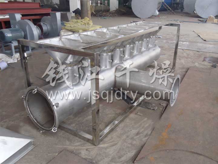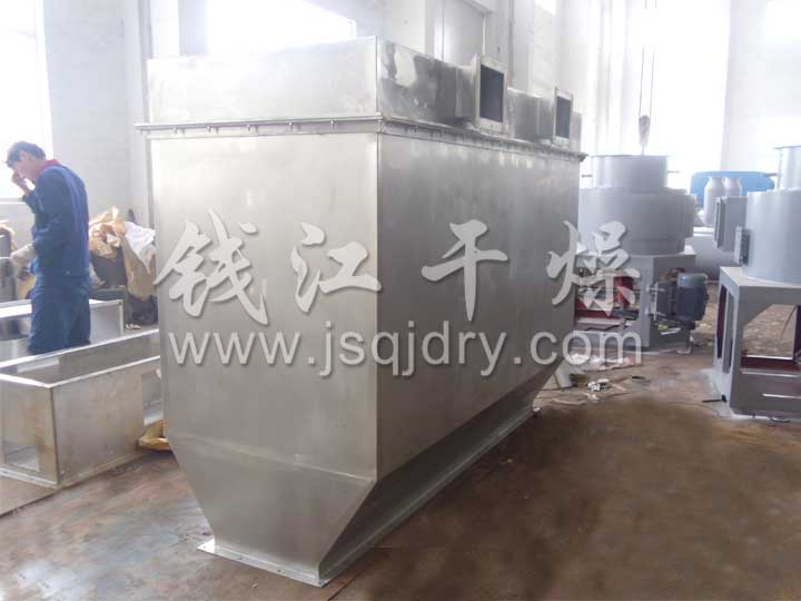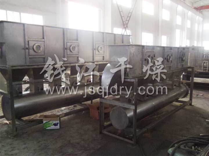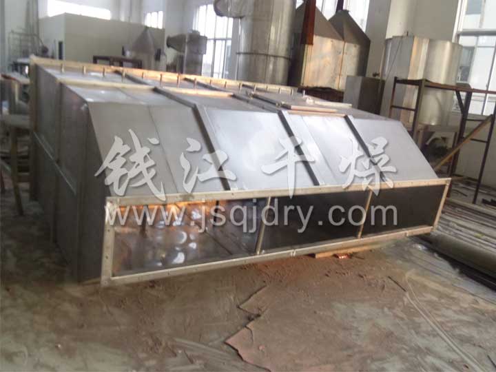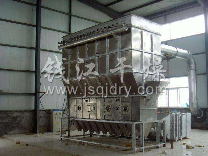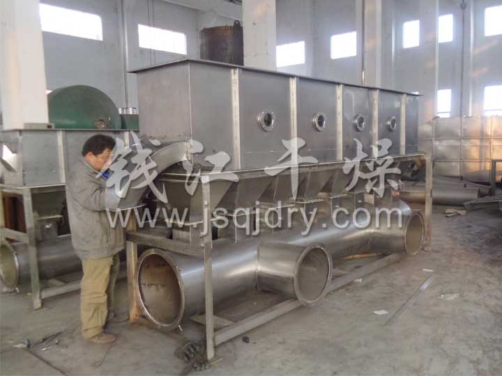 潔凈的熱風經閥板分配進入床體內,從加料器進入的濕物料被熱風形成沸騰狀態。由于熱風與物料廣泛接觸,增強了傳熱傳質的過程,因此在較短時間內就可干燥。如用連續型,物料從床體的一頭進入,經過幾十秒至幾分鐘沸騰干燥,自動從床體另一頭流出。本設備一般進行負壓操作。