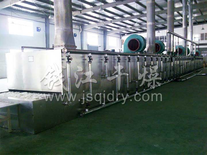 該機(jī)是穿流連續(xù)式干燥設(shè)備,用于透氣性較好的片狀、條狀、顆粒狀物料的干燥,對于脫水蔬菜、中藥飲片等類含水率高、而溫度不允許高的物料尤為合適;該系列干燥機(jī)具有干燥速度快、蒸發(fā)強(qiáng)度高、產(chǎn)品質(zhì)量好的優(yōu)點(diǎn),對脫水濾餅狀的膏狀物料,需經(jīng)造粒或制成棒狀后亦可干燥。