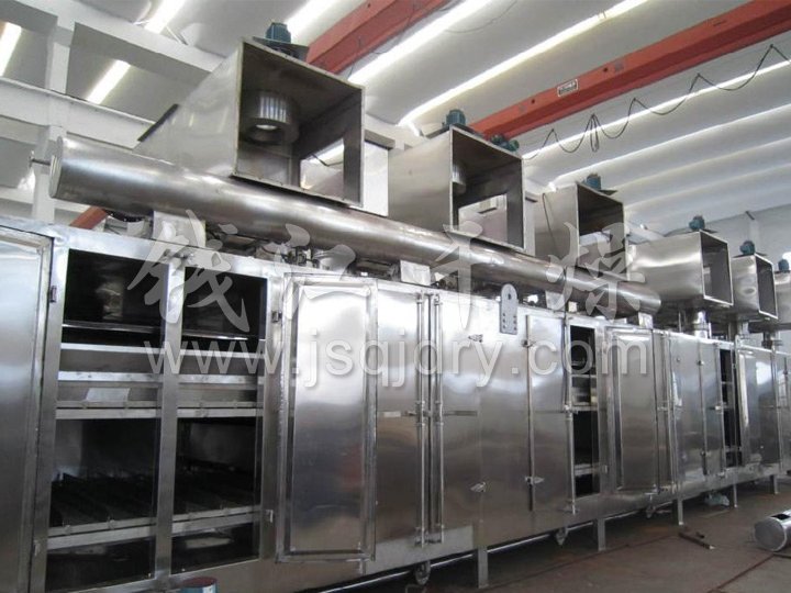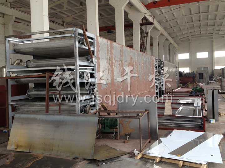 DW系列多層帶式干燥機是成批生產用的連續式干燥設備,用于透氣性較好的片狀、條狀、顆粒狀物料的干燥,對于脫水蔬菜、催化劑、中藥飲片等類含水率高、而物料溫度不允許高的物料尤為合適;該系列干燥機具有干燥速度快、蒸發強度高、產品質量好的優點, 對脫水濾餅類的膏狀物料, 需經造粒或制成條狀后方可干燥。