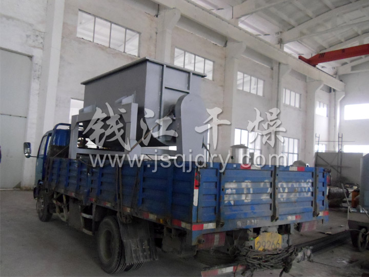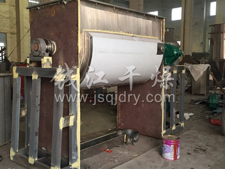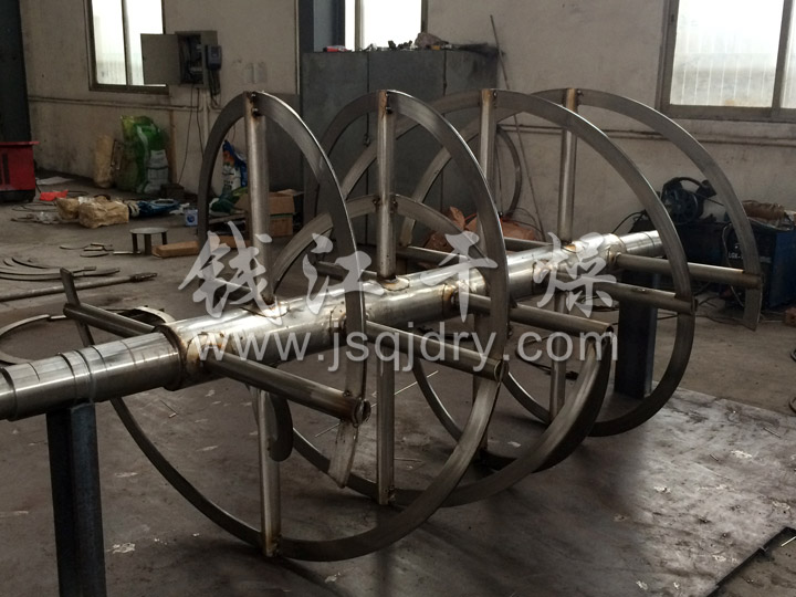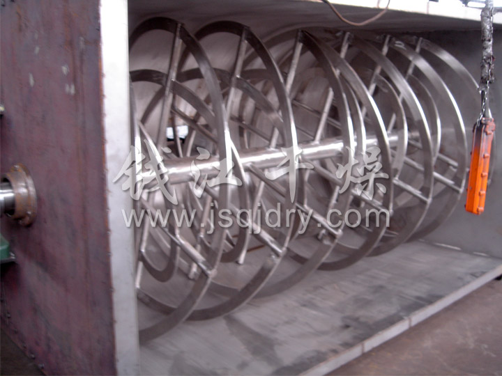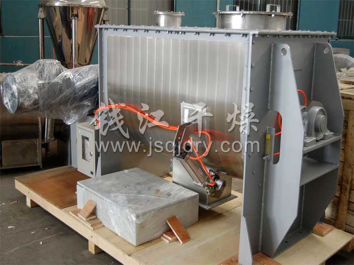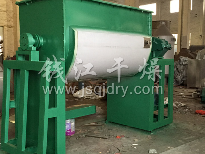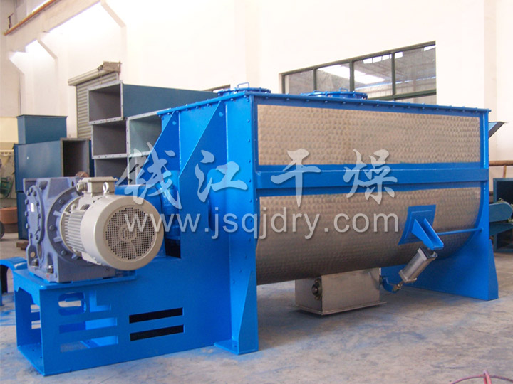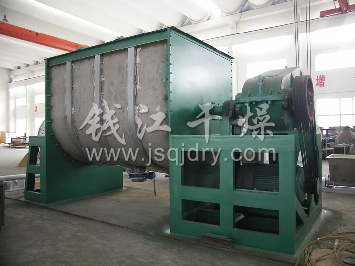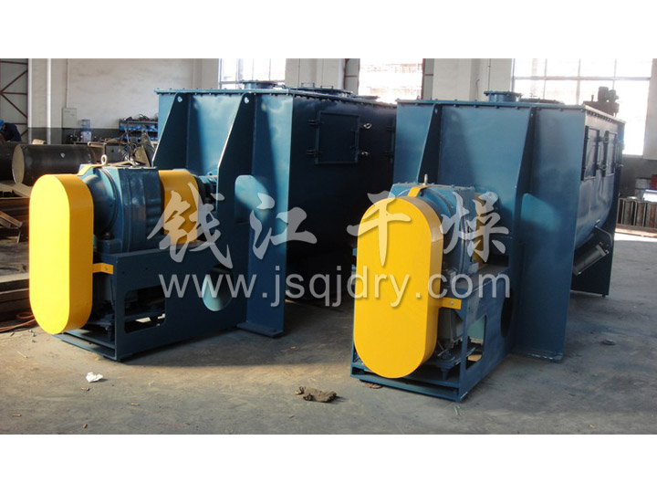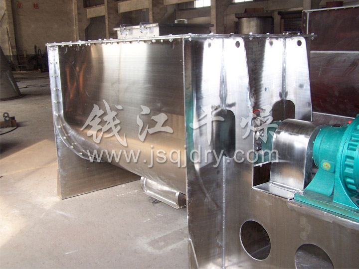 該機型由容器、螺旋攪拌葉片和傳動部件組成:螺旋葉片一般做成雙層或三層,外層螺旋將物料從兩側向中央匯集,內層螺旋將物料從中央兩側輸送,形成對流混合。
