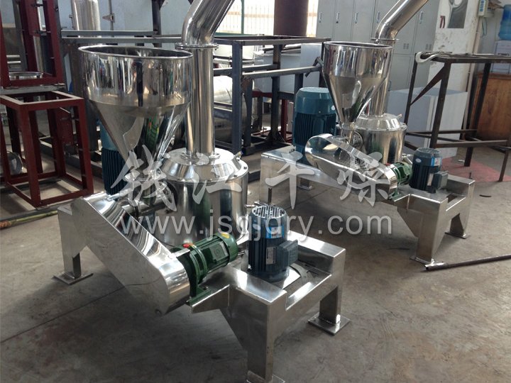 SWFJ-15/20/30/60型超微粉碎機(jī)組主要適合于粉碎細(xì)度在80-400目、產(chǎn)量較大的粉碎需求,非常適合藥廠、食品廠、化工廠的高精度粉碎要求,粉碎細(xì)度可隨意調(diào)節(jié)。該粉碎機(jī)組主要由主機(jī)、輔機(jī)、電控箱三個(gè)部分組成,設(shè)計(jì)緊湊,結(jié)構(gòu)合理,屬風(fēng)選式、無篩網(wǎng)。超微粉碎機(jī)組整機(jī)都由優(yōu)質(zhì)不銹鋼生產(chǎn)制造而成。機(jī)內(nèi)裝有分級(jí)機(jī)構(gòu),能使粉碎、分級(jí)一次完成。負(fù)壓輸送使粉碎作業(yè)時(shí)機(jī)腔內(nèi)產(chǎn)生的熱量源源不斷地排出,故也適應(yīng)于熱敏性物料的粉碎。本機(jī)適用范圍廣,生產(chǎn)過程連續(xù)進(jìn)行,出料粒度可調(diào)。