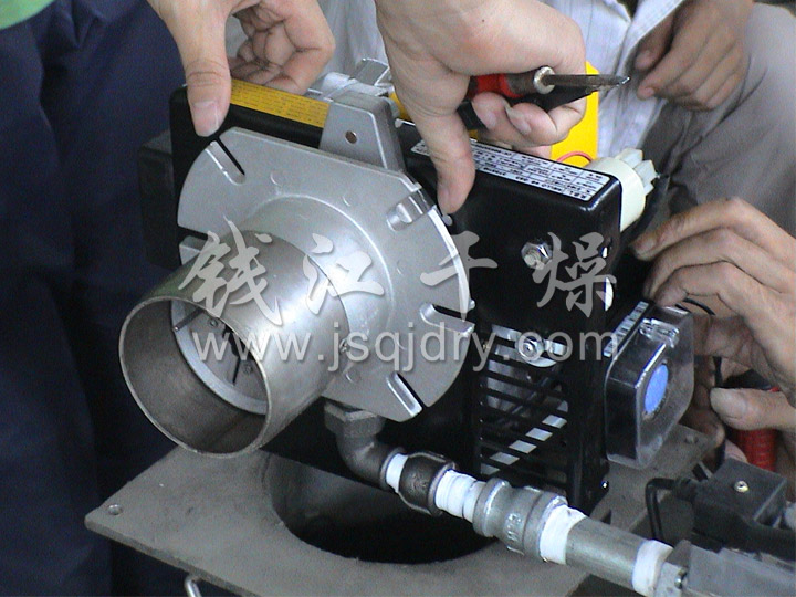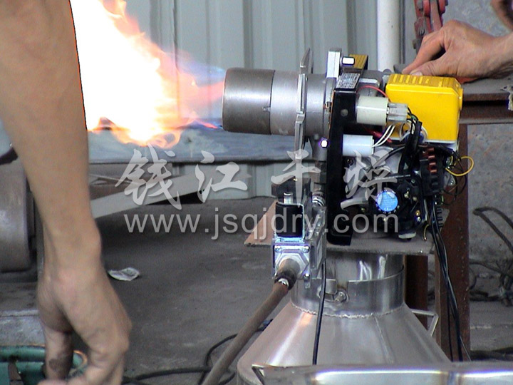 燃料通過燃燒器燃燒,產(chǎn)生高溫燃?xì)狻2⒔柚哂袕娀瘬Q熱措施的熱風(fēng)爐將高溫燃?xì)獾臒崃總鲗?dǎo)給被加熱的空氣,高溫燃?xì)饨?jīng)熱量散發(fā)后溫度降低至250℃后排到大氣中。需加熱的空氣通過選配的鼓風(fēng)機強送入熱風(fēng)爐,吸熱后溫度升至額定值從熱風(fēng)出口處送出,當(dāng)熱風(fēng)溫度達(dá)到額定溫度上限時,燃燒器會自動停止燃燒或自動轉(zhuǎn)為小火焰燃燒,當(dāng)熱風(fēng)溫度降低到額定下限溫度時,燃燒器又會重新點燃運行或轉(zhuǎn)為大火燃燒,升溫的速度可以調(diào)節(jié)進風(fēng)閥的開度來實現(xiàn)。
