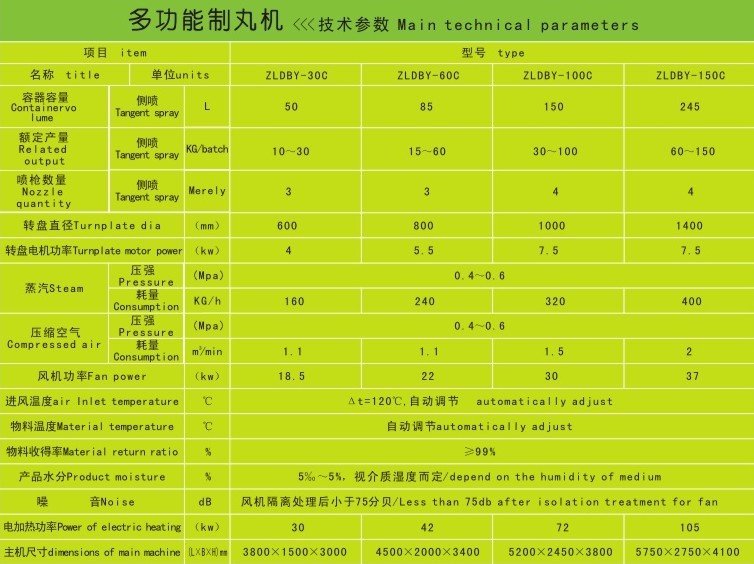 集制丸、包衣、干燥為一體,減少工藝步驟及污染環節、降低勞動強度,設備按2Bar或10Bar耐壓標準設計,整機各部件有良好的接地方式。