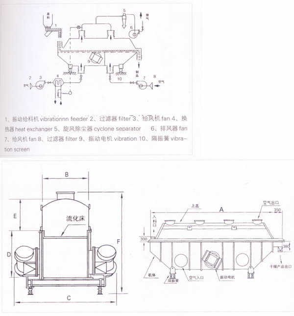 5.當(dāng)用于高水分物料大批量生產(chǎn)時(shí),可采用多臺玻璃纖維振動流化床干燥機(jī)串聯(lián)的方式以達(dá)到用戶要求(典型物料:如聚丙烯酰胺等)。