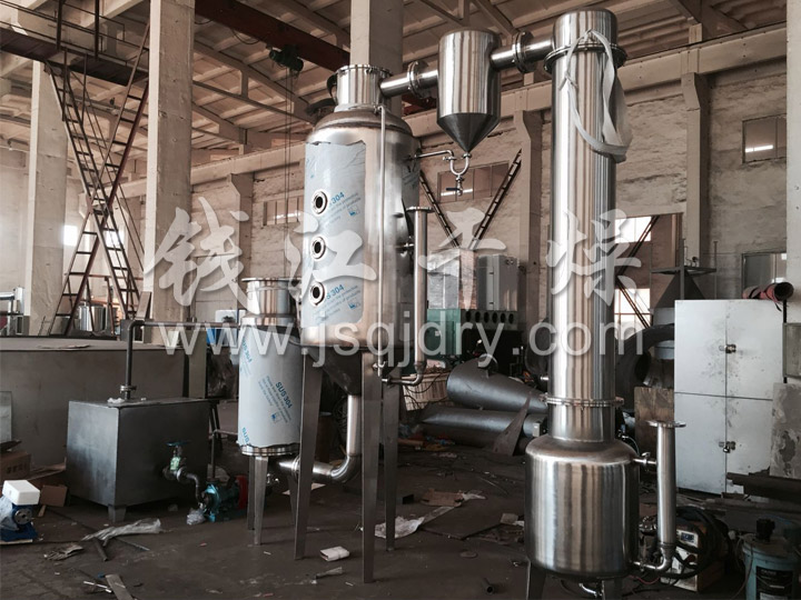 直接熱源加熱 它是將燃料與空氣混合,結晶蒸發器使其燃燒產生的高溫火焰和煙氣經噴嘴直接噴入被降膜蒸發器蒸發的溶液中來加熱溶液、使溶劑汽化的蒸發過程。