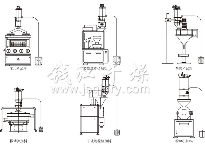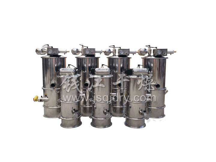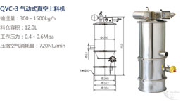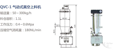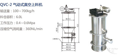 當壓縮空氣供給真空發生器時,真空發生器就產生負壓形成真空氣流,物料被吸入吸料咀,形成物氣流,經過吸料管到達上料機的料倉內。過濾器把物料與空氣徹底分離,當物料裝滿料倉時,控制器會自動切斷氣源,真空發生器停止工作,同時料倉門自動開啟,物料落到設備的料斗中。與此同時,壓縮空氣通過脈沖反吹閥自動清洗過濾器。等到時間到或料位傳感器發出上料信號時,自動啟動上料機。